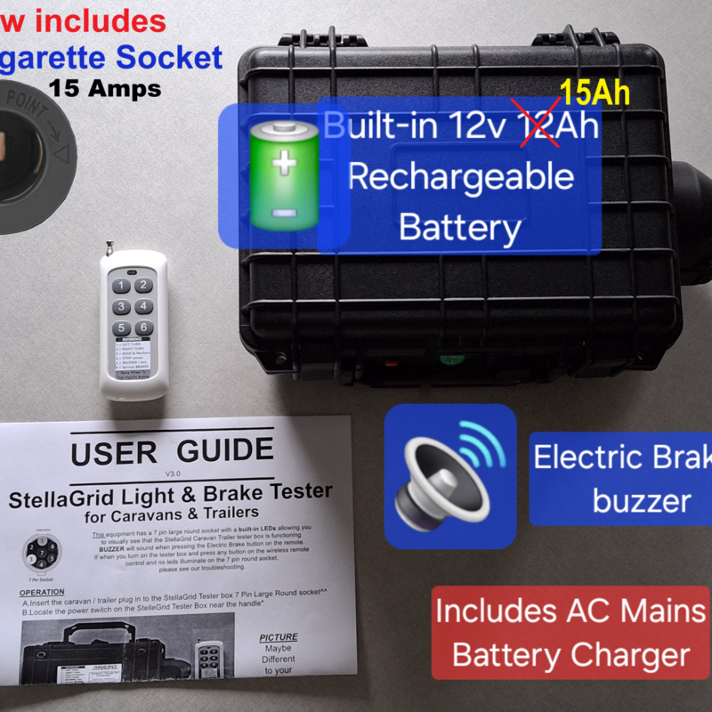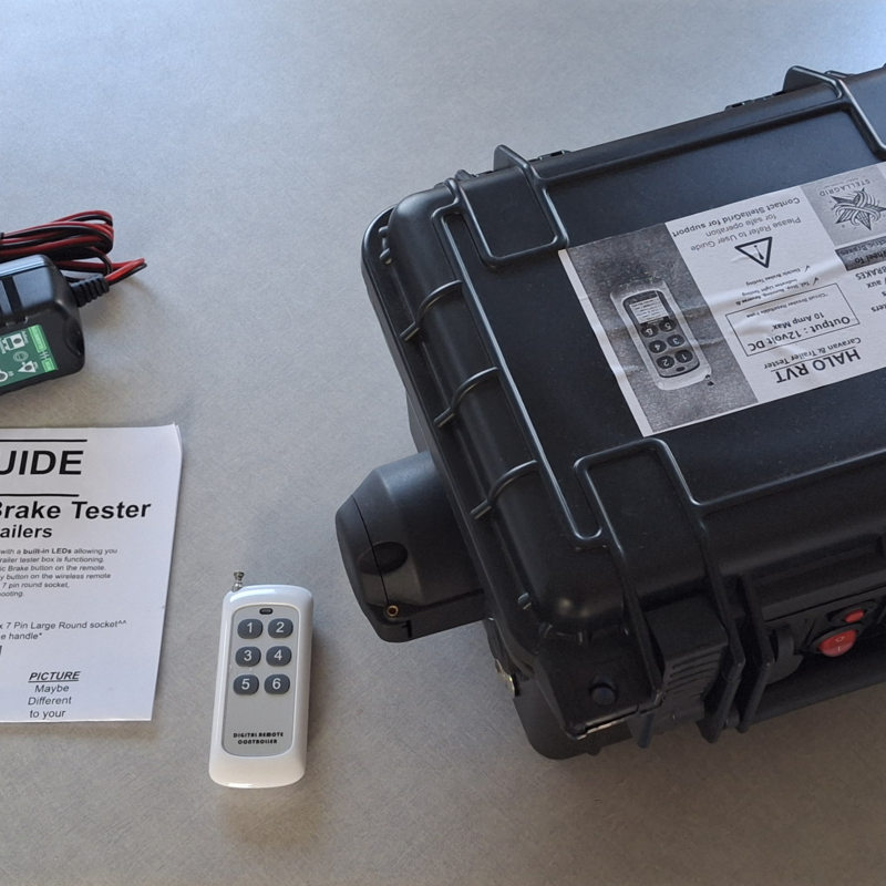 ** Wireless remote control is provided with suitable range for you to connect the main tester box and walk to the back of the trailer or caravan to press the various buttons on the remote to illuminate the lights. In addition you can jack up the trailer or caravan wheel and press the remote brake button whilst you spin the wheel and the wheel should stop demonstrating that your electric brake on that wheel is working.