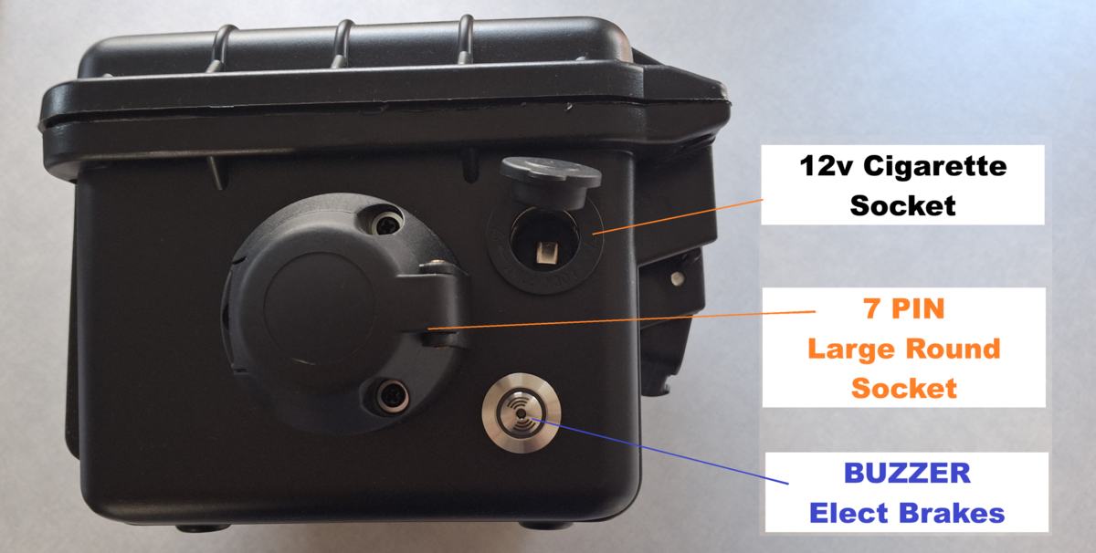 *There is on the large 7 pin round socket LED's that will illuminate to show the tester box is working. Also there is a BUZZER that sounds when pressing the Electric Brake button on the wireless remote.