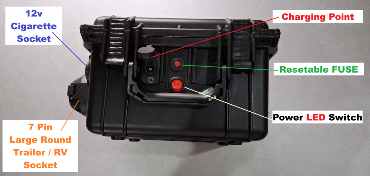 UPDATED version from November 2025 is slightly larger box with the rechargeable 12Ah AGM battery changed for a 15Ah AGM battery, in addition to the increased power now includes a 12v cigarette lighter socket rated up to 15 amps to support things like tire inflators and other devices.