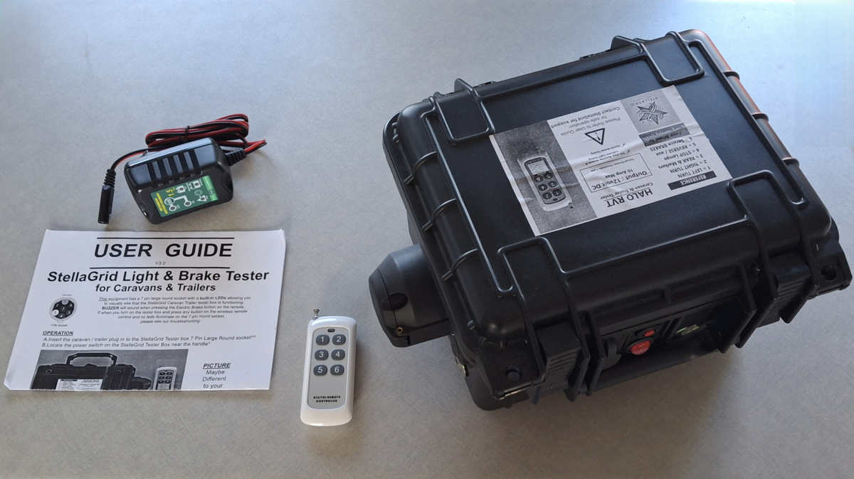 ** Wireless remote control is provided with suitable range for you to connect the main tester box and walk to the back of the trailer or caravan to press the various buttons on the remote to illuminate the lights. In addition you can jack up the trailer or caravan wheel and press the remote brake button whilst you spin the wheel and the wheel should stop demonstrating that your electric brake on that wheel is working.